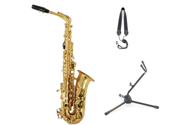 Parrot 6430L Alto Sax - Saxofon Alto echipat cu muștiuc, toc, perie de curățare, ancie și grătar. Tot ceea ce ai nevoie pentru a putea cânta imediat ce este scos din cutie.