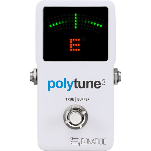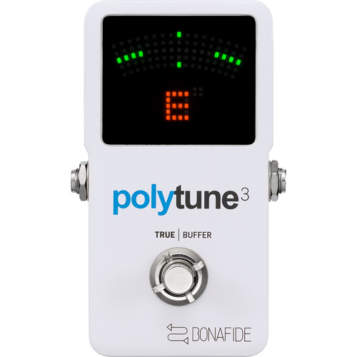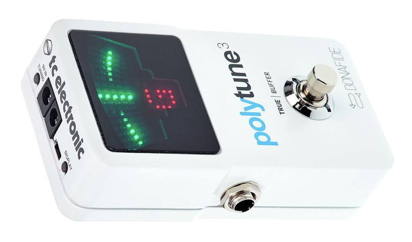 TC Electronic Polytune 3 - tuner/acordor polifonic pentru chitară electrică, în format stomp box (padală), ce oferă o reglare rapidă și precisă, în mod cromatic, polifonic sau strobe. Beneficiază de circuite analogice Bonafide Buffer, ce nu alterează tonul dumneavoastră, chiar și atunci când sunt utilizate cabluri lungi sau când acesta face parte din pedaliere complexe. Modul de acordare polifonică, permite acordarea tuturor corzilor simultan, modul ultra rapid cromatic oferă un acordaj cu acuratețe de 0.5 cent, iar modul ultra precis strobe, oferă acordaj cu acuratețe de ± 0,02 cent. Buffer-ul excepțional păstrează tonul dvs. transparent și clar, cu o intrare de 1 MΩ, o ieșire de 100 Ω și un raport de semnal/zgomot de > 112 dB. Modurile selectabile true bypass / buffer, permit optimizarea integrității semnalului pentru orice tip de setup. Modul de utilizare “Always on”, menține tunerul pornit și detectează chiar și atunci când nu este pus pe mute. Pentru condiții optime de vizualizare, oferă un display Super-bright 109-LED cu senzor de lumină de ambient. De asemeni, în funcție de câte corzi sunt utilizate, tunerul selectează automat modul de utilizare polifonic sau monofonic.