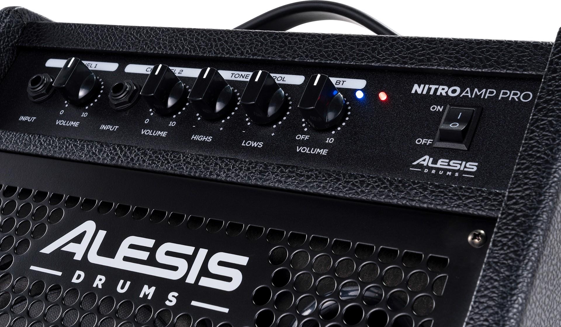 Alesis Nitro Amp Pro - Monitor activ pentru tobe electronice, cu arhitectură pe 2 căi, design compact și putere de 80W, fiind ideal atât pentru repetițiile de acasă, cât și pentru sesiunile de jam cu melodiile preferate, redând fidel atât frecvențele joase ale tobei mari, cât și detaliile cinelului.