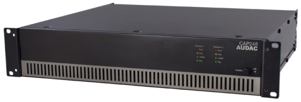 Audac CAP-224, amplificator profesional pentru instalații cu 2 canale de câte 240W fiecare la 100/70V:
