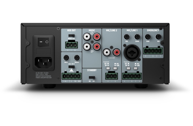 LD Systems IMA 30, amplificator pentru instalații rezidențiale sau industriale, IMA 30 are mixer integrat, conectivitate Bluetooth și circuit de prioritate cu multiple reglaje.