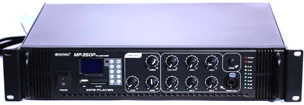| Canale: | Canal de microfon: 1 x mono prin mufa combinată (XLR/jack), control canal prin selector rotativ Canal microfon: 2 x mono prin jack, control canal prin selector rotativ Canal de intrare: 3 x stereo prin RCA, control canal prin selector rotativ Canal de intrare: prin player audio, control canal prin selector rotativ, control Mute, Ieșire master: mono, control canal prin selector rotativ, EQ pentru controlul tonului pe 2 benzi |