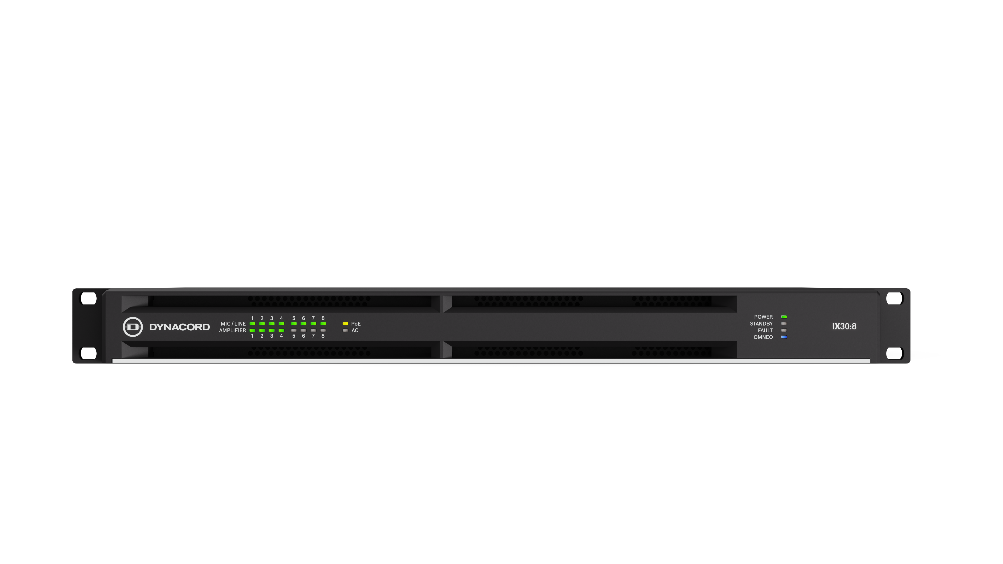 Dynacord IX30:8 - Amplificator DSP de rețea cu 8 canale și o putere totală de 3 kW, ideal pentru o gamă largă de aplicații, de la locații sportive la lăcașuri de cult, săli de spectacole și ospitalitate. Beneficiind de tehnologia powerTANK, poate gestiona sarcini atât de impedanță înaltă (Hi-Z), cât și joasă (Lo-Z), oferind o flexibilitate operațională remarcabilă.