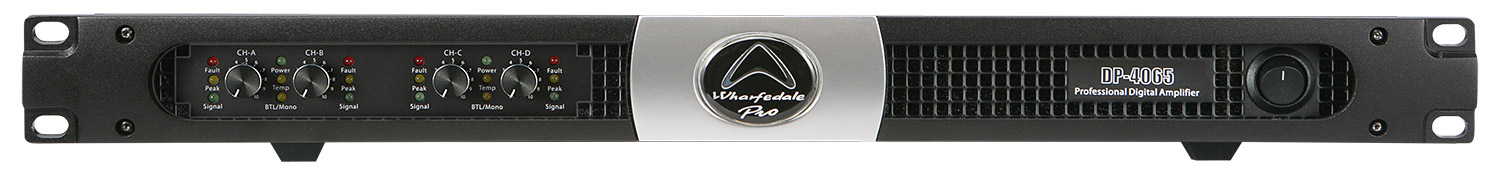 Wharfedale Pro DP-4065, amplificator profesional cu 4 canale pentru sunet live sau instalații. Cu topologie de clasa D și sursă în comutație, livrează putere semnificativă cu distorsiuni minime într-o forma compactă 1U și ușoară de doar 9.1 kg.