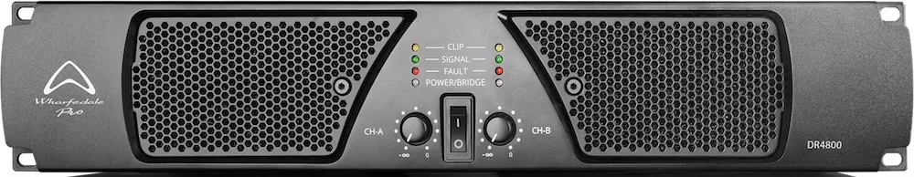 Wharfedale Pro DR-4800 - Amplificator de putere clasa D cu 2 canale, ce oferă o putere de 2500 W per canal la 4 Ohmi. Este montabil în rack, măsurând 2U (unități) și este prevăzut cu conexiuni XLR și speakON™, sensibilitate de intrare reglabilă și moduri de operare Stereo, Bridge și Parallel, oferind flexibilitate în configurare.