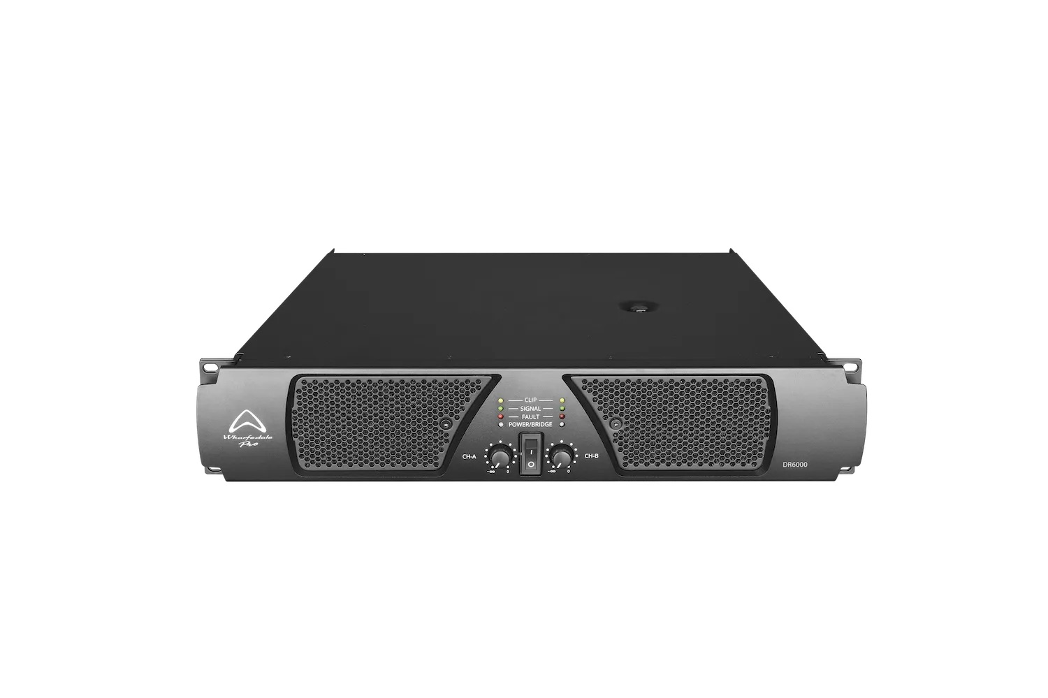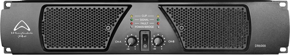 Wharfedale Pro DR-6000 - Amplificator de putere clasa D cu 2 canale, ce oferă o putere de 3150 W per canal la 4 Ohmi. Este montabil în rack, măsurând 2U (unități) și este prevăzut cu conexiuni XLR și speakON™, sensibilitate de intrare reglabilă și moduri de operare Stereo, Bridge și Parallel, oferind flexibilitate în configurare.