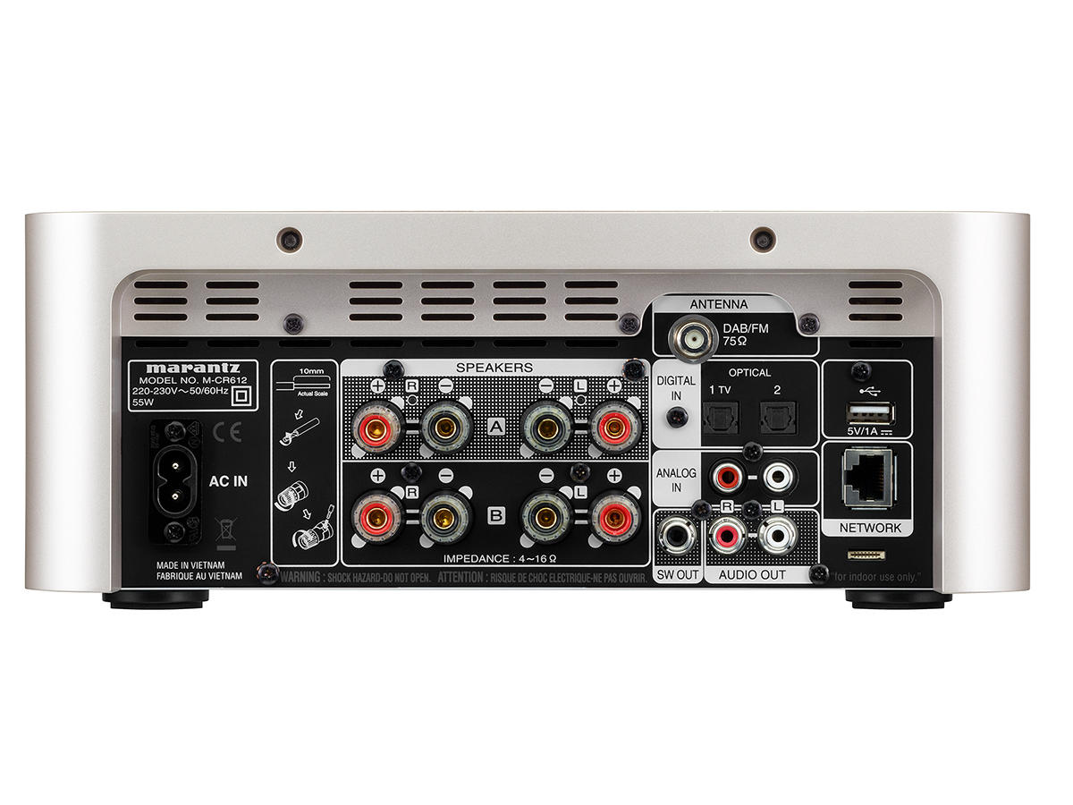 Marantz Melody X (M-CR612) –Sistem Hi-Fi All-in-One compact cu streaming și CD, conceput pentru redarea muzicii din multiple surse, inclusiv CD, radio și streaming online. Dispune de patru canale de amplificare digitală care permit configurarea pentru două perechi de difuzoare sau utilizarea în mod bi-amping pentru o singură pereche. Integrează tehnologia HEOS pentru streaming multi-room și conectivitate Wi-Fi, AirPlay 2 și Bluetooth.