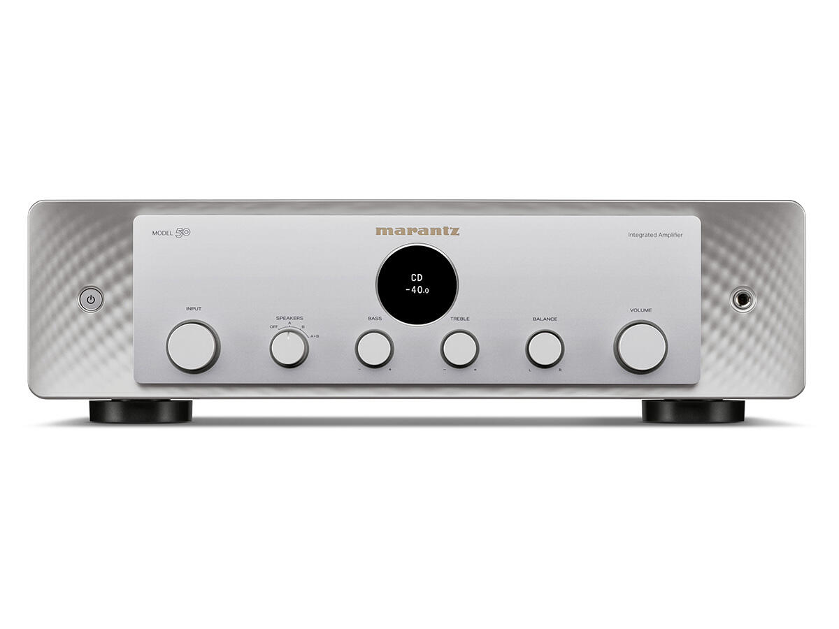 Marantz MODEL 50 - Amplificator integrat stereo proiectat pentru sisteme Hi-Fi analogice. Utilizează o arhitectură de amplificare Class A/B și circuite audio discrete pentru redarea semnalului fără procesare digitală. Permite conectarea mai multor surse analogice, inclusiv pickup și subwoofer.