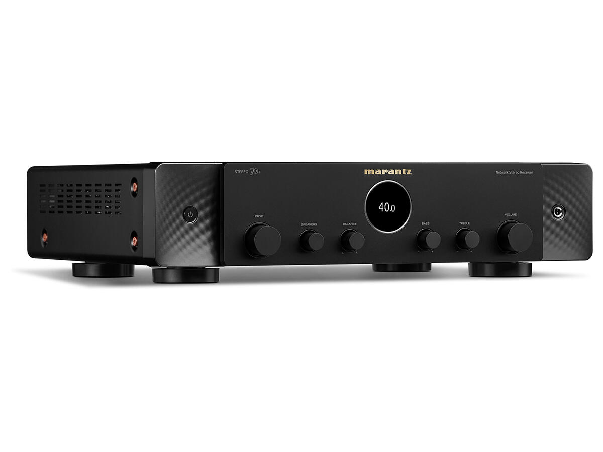 Marantz STEREO 70s - Receptor stereo de rețea care combină performanța audio Hi-Fi cu funcții moderne de home theater. Oferă putere și experiență sonoră amplă folosind doar două difuzoare, păstrând caracterul cald și detaliat specific Marantz. Include conectivitate HDMI 8K pentru surse video, streaming muzical prin rețea și intrare phono pentru pick-up, într-un design compact și elegant.