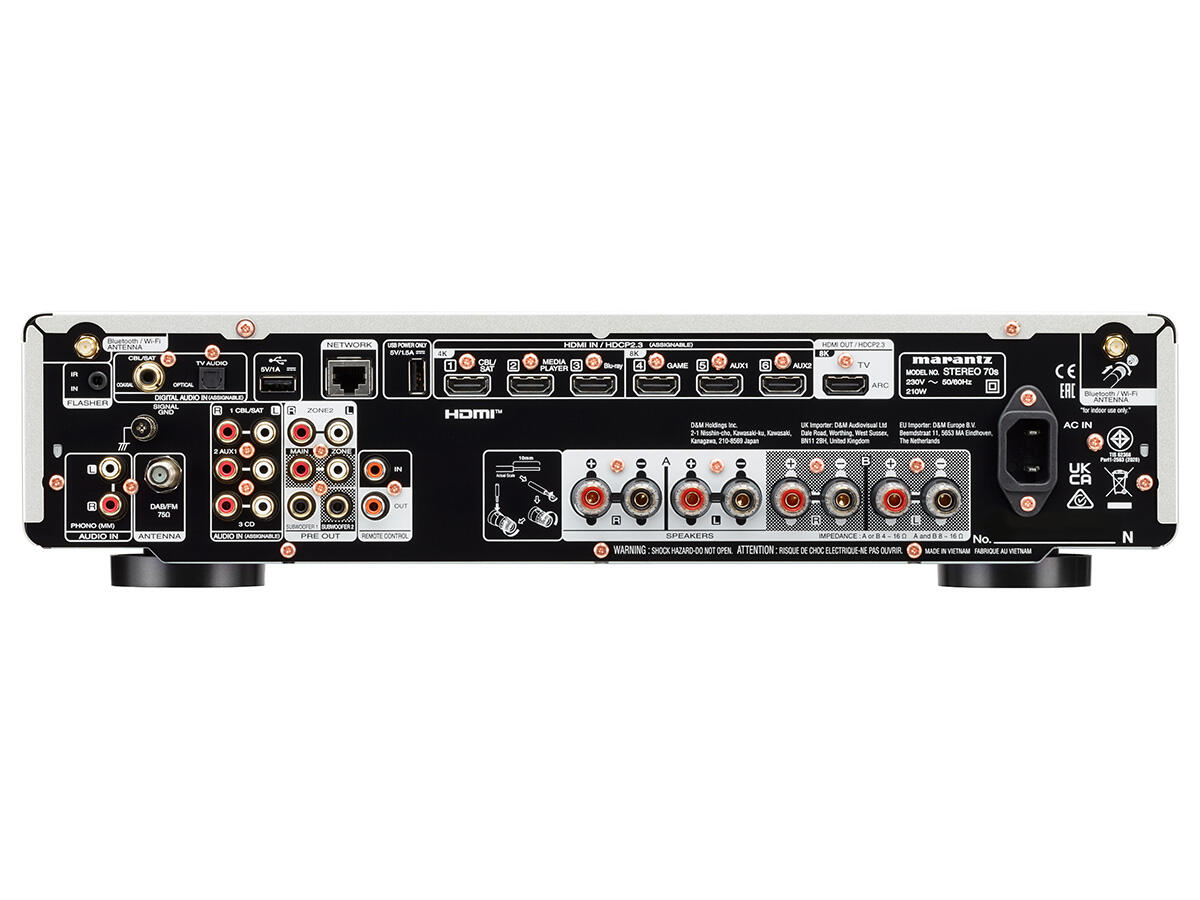 Marantz STEREO 70s - Receiver stereo cu amplificator discret și conectivitate pentru surse audio și video moderne. Permite redarea muzicii prin streaming și conectarea dispozitivelor externe prin HDMI.