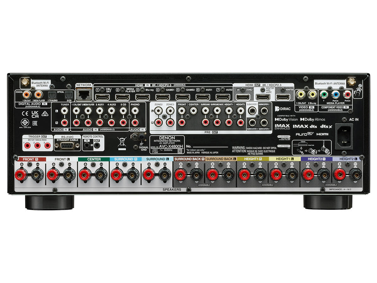 Denon AVC-X4800H BLACK – Amplificator AV 9.4 8K, cu 9,4 canale, proiectat pentru sisteme home theater mari, oferind sunet 3D captivant prin Dolby Atmos, DTS:X, IMAX Enhanced și Auro-3D. Include HEOS® Built-In pentru streaming wireless și opțiuni de corecție a camerei prin Audyssey sau Dirac Live. Fabricat în Japonia și reglat de Denon Sound Master pentru performanță audio optimă.