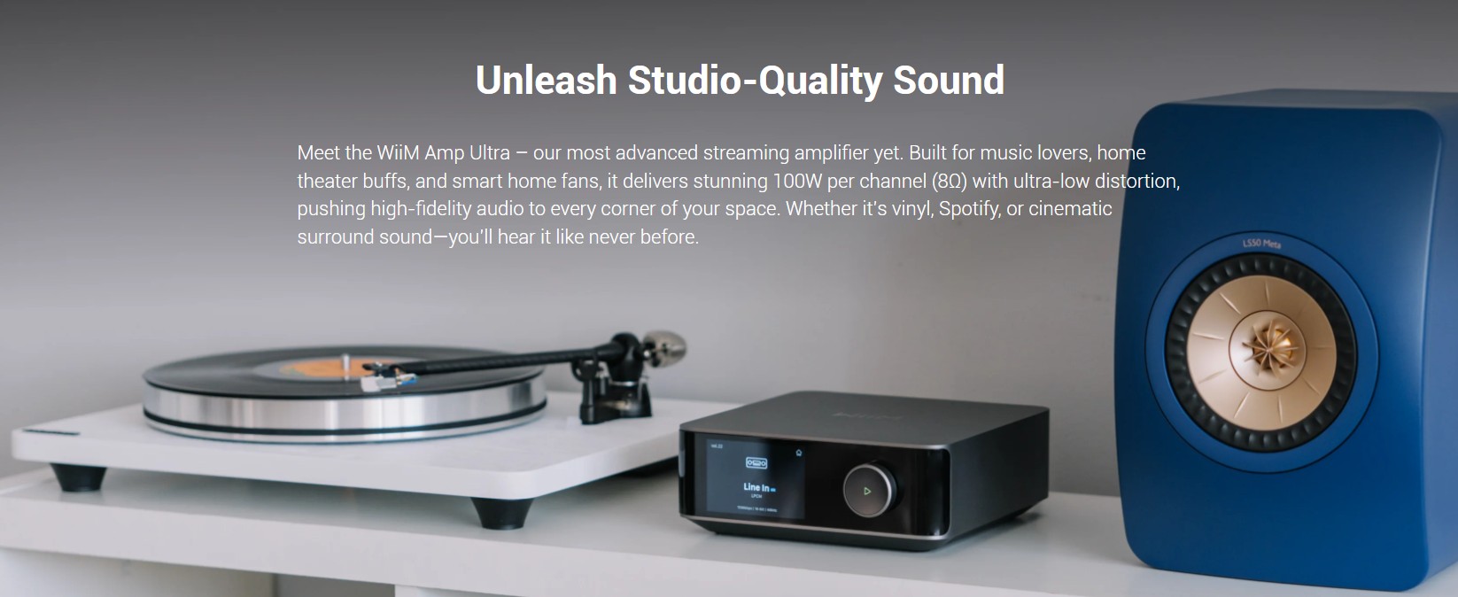 WiiM AMP ULTRA 2 x 100W Gri - Amplificator de streaming all-in-one de ultimă generație, conceput pentru audiofili, sisteme home cinema și locuințe inteligente.