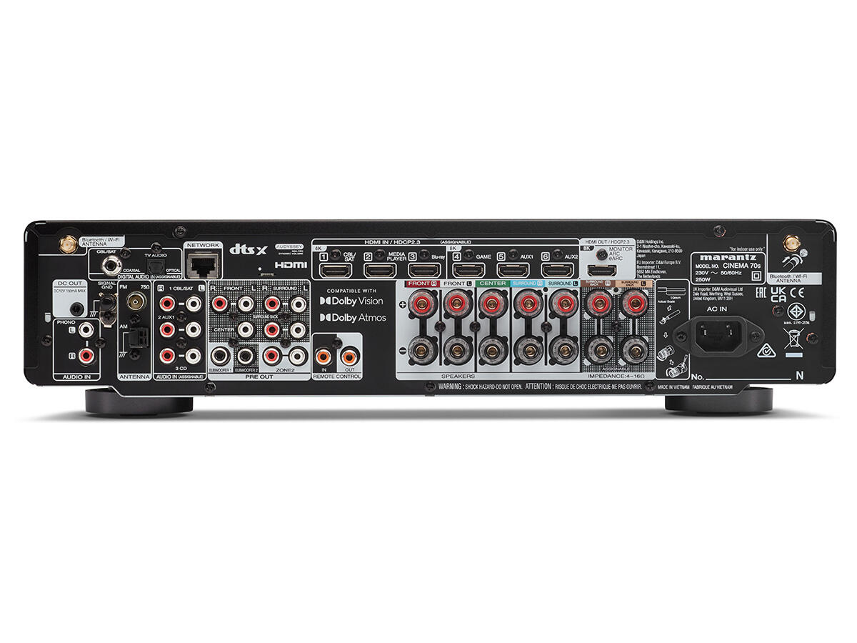 Marantz CINEMA 70s – Receptor AV compact pentru home theater, ce aduce performanță ridicată într-un format subțire și elegant, fiind ideal pentru camere mai mici sau mobilier compact. Combinația de amplificare Marantz, streaming HEOS și tehnologiile Dolby Atmos și DTS:X oferă o experiență audio imersivă pentru filme, muzică și jocuri.