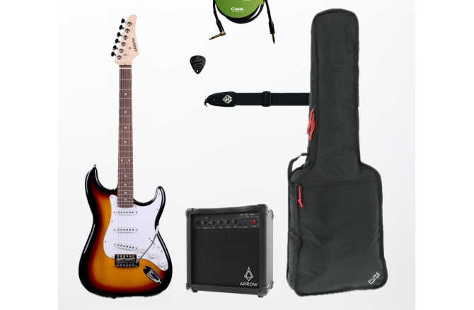 Arrow Tonecaster ST 111 Amburst Rosewood/White – Chitară electrică în stil Stratocaster, cu finisaj Sunburst. Corpul este din plop, în timp ce gâtul din arțar canadian este echipat cu o tastieră din palisandru, iar cele 3 doze single-coil sunt ideale pentru versatilitate tonală. Chitara are un cutaway asimetric care face să fie ușor și confortabil să ajungi chiar și la cele mai înalte freturi.