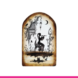 Pictură pe lemn - Fată cu flaut și pasăre I 22 x 14 Adaugă coș: 19500 Lei