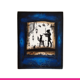 Pictura pe lemn - Muzicanți cu marionete I 20 x 26