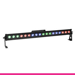 Bară LED pentru exterior cu 18 LED-uri SMD 9080 de 8 W, control separate al pixelilor și amestec omogen RGBW. Potrivită pentru scenă, cluburi, restaurante sau instalări exterioare, oferă efecte de wash, stroboscopice și programe presetate.