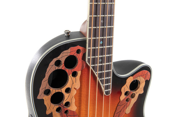 Ovation Celebrity E-Acoustic Bass CEB44-1N - Chitară bas electro-acustică din seria Celebrity. CEB44-1N are corp asimetric, clasic din material Lyrachord cu adâncime medie care oferă o caracteristică sonoră caldă cu răspuns rapid și dispune de un design distinctiv multi-soundhole care permite părții superioare din molid să rezoneze mai mult, deoarece găurile sonore sunt situate departe de centrul corpului.