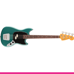 Fender American Professional Classic Mustang Bass RW Faded Sherwood Green Metallic – Bas electric fabricat în SUA, cu formă Mustang, dotat cu un pickup split-coil Coastline™ ’70s Mustang®, ce oferă un sunet profund, articulat și cu atac precis, ideal pentru mixuri complexe și performanțe live puternice.