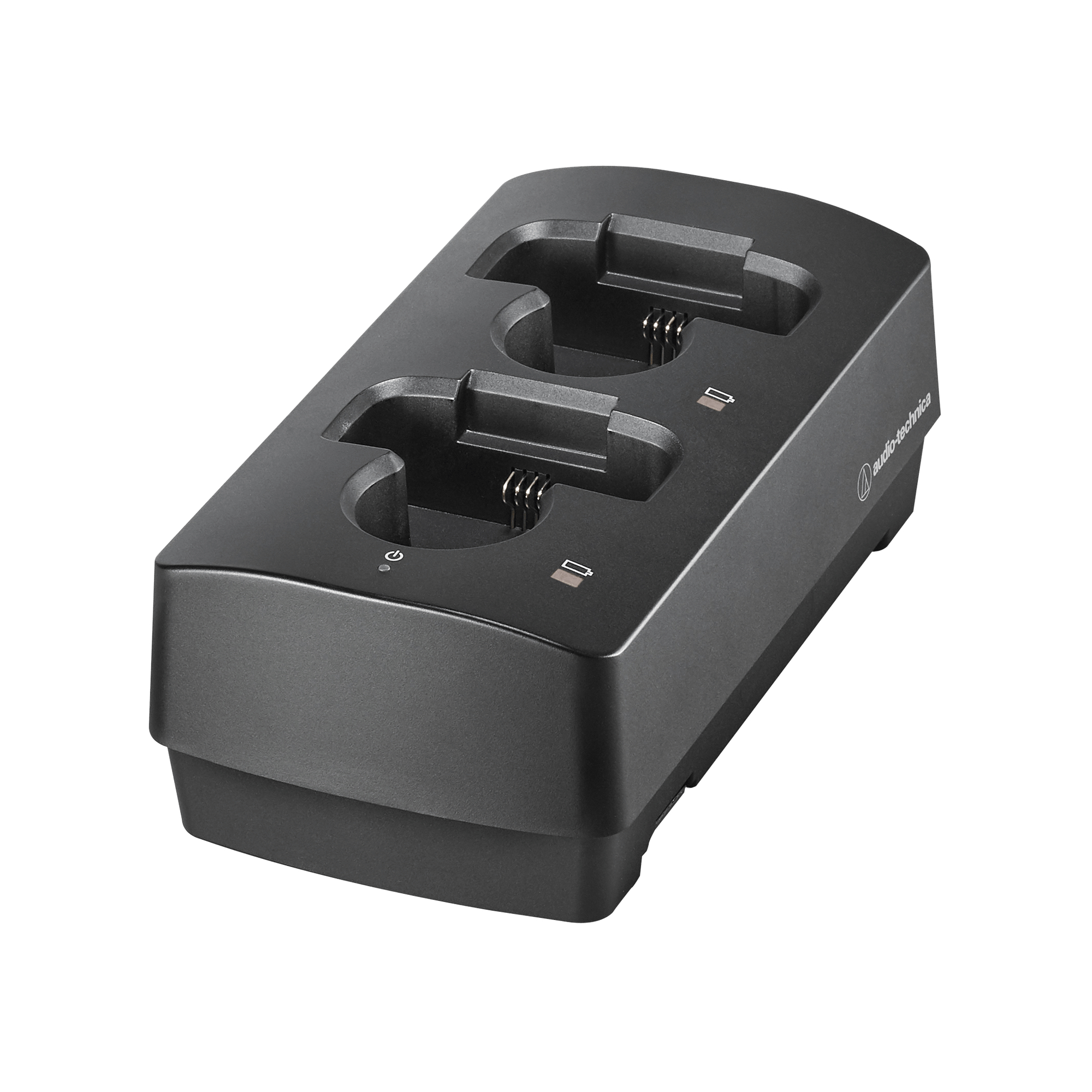Audio-Tehnica ATW-CHG3N Stație de încărcare cu două compartimente - Bateriile NiMH sunt încărcate direct în transmițătoare, până la cinci stații de andocare pot fi conectate la o sursă de alimentare și o aplicație dedicată pentru monitorizare și control. Dock-ul se oprește automat dacă în transmițătoare sunt detectate baterii alcaline sau deteriorate.