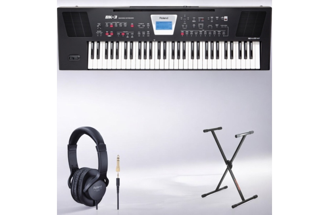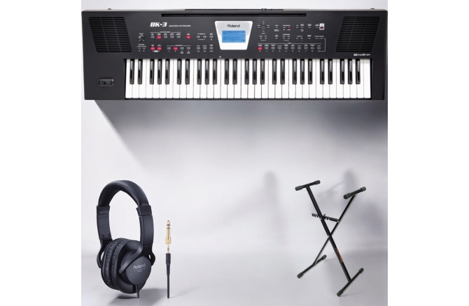Roland BK-3, claviatura cu aranjor pentru începători și studenți, dar și artiști solo care au nevoie de auto-acompaniament, BK-3 oferă o gama largă de sunete și ritmuri de calitate, redare prin USB, are difuzoare integrate, este portabil și are o interfață ușor utilizabilă, intuitivă.