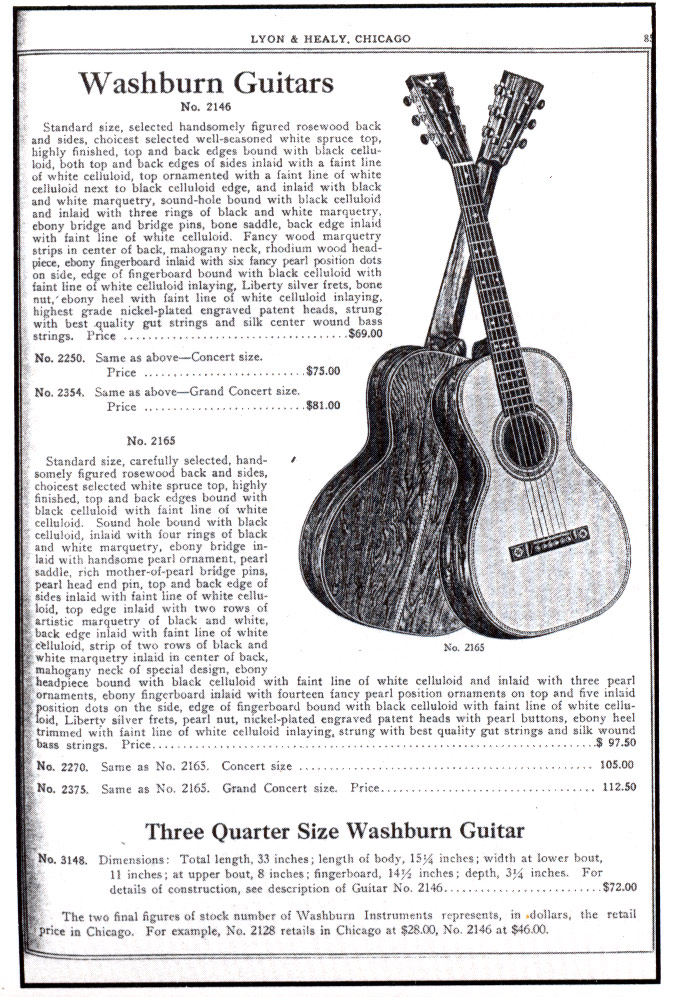 În anii 1880 folosirea cataloagelor ca materiale promoţioale a fost o idee relativ nouă, mai ales în domeniul instrumentelor muzicale. Catalogul de Suveniruri Washburn (Washburn Souvenir Catalog)- dedicat iubitorilor de arte şi muzicienilor-, prezenta prin intermediul imaginilor şi descrierilor detaliate, calitatea deosebită a instrumentelor muzicale. Cataloagele Washburn au fost distribuite cu succes foarte repede şi au influenţat şi alţi producători de instrumente muzicale.