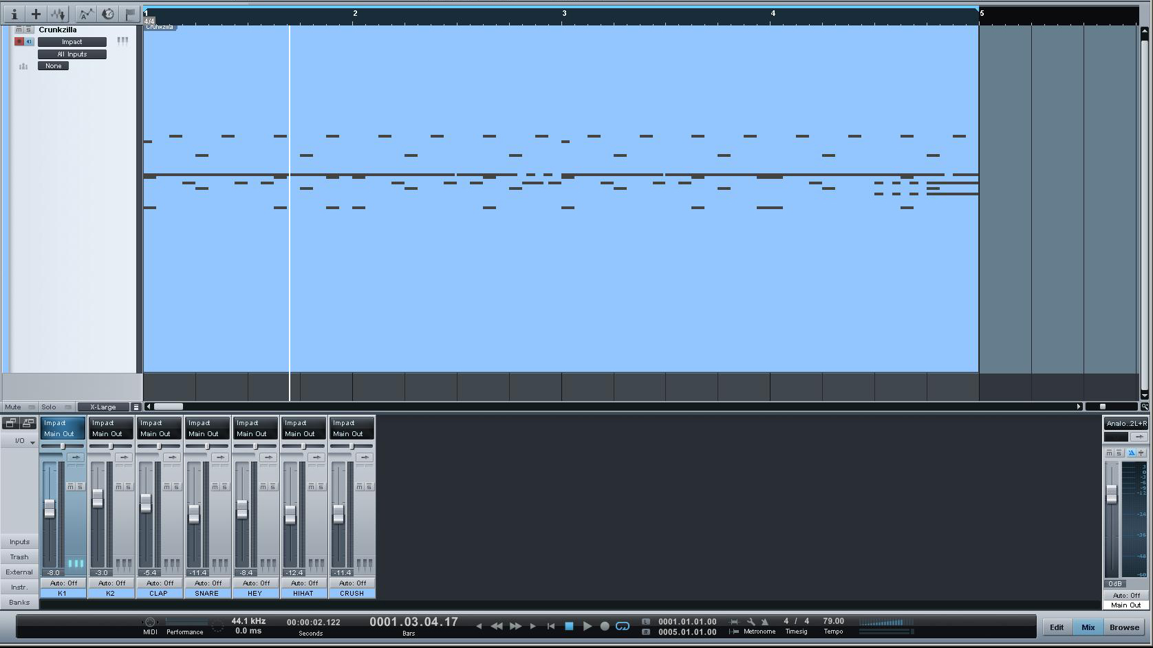 In acest track avem prezente doua sunete de kick (toba mare) “ K1 si K2 ”