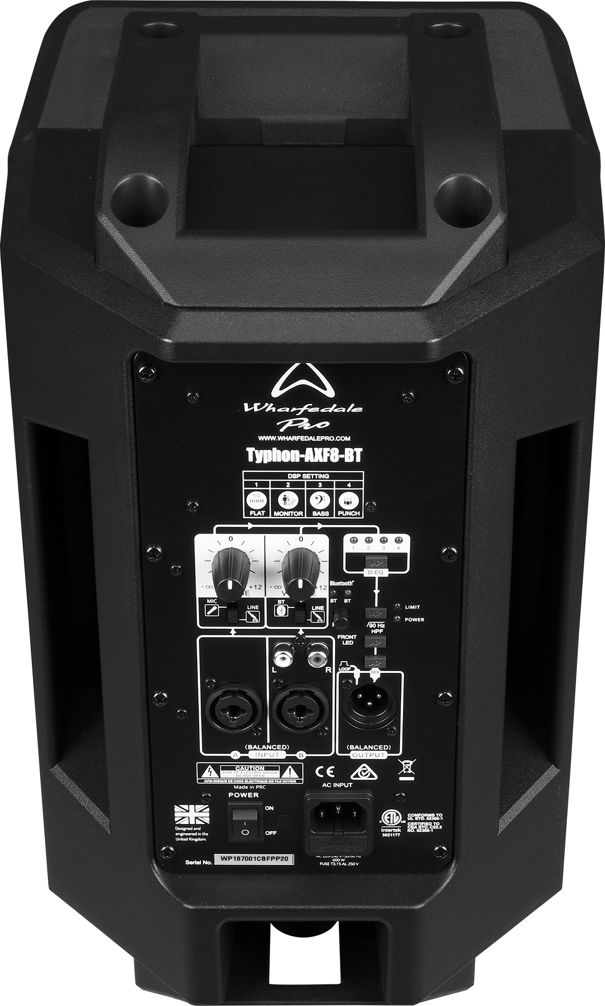 Wharfedale Pro Typhon AXF8-BT, boxă activă cu 2 amplificatoare clasa D și conectivitate Bluetooth cu stereo link. Boxele din seria nouă Typhon AXF au crossovere îmbunătățite și un DSP actualizat, care oferă filtrare FIR și o performanță generală mai bună a basului.