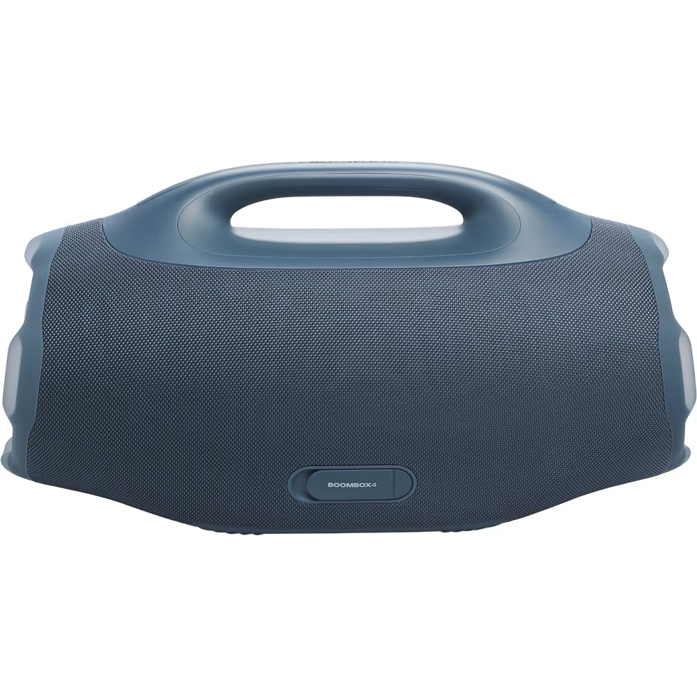 JBL Boombox 4 Blue - Boxă Bluetooth portabilă, cu sunet clar, bass profund și autonomie de până la 34 de ore. Tehnologia AI Sound Boost optimizează redarea în timp real, iar designul nou este mai mare, dar mai ușor, perfect pentru petreceri oriunde. Este complet rezistentă la apă și praf (IP68) și oferă conectivitate Bluetooth și control prin aplicația JBL Portable.
