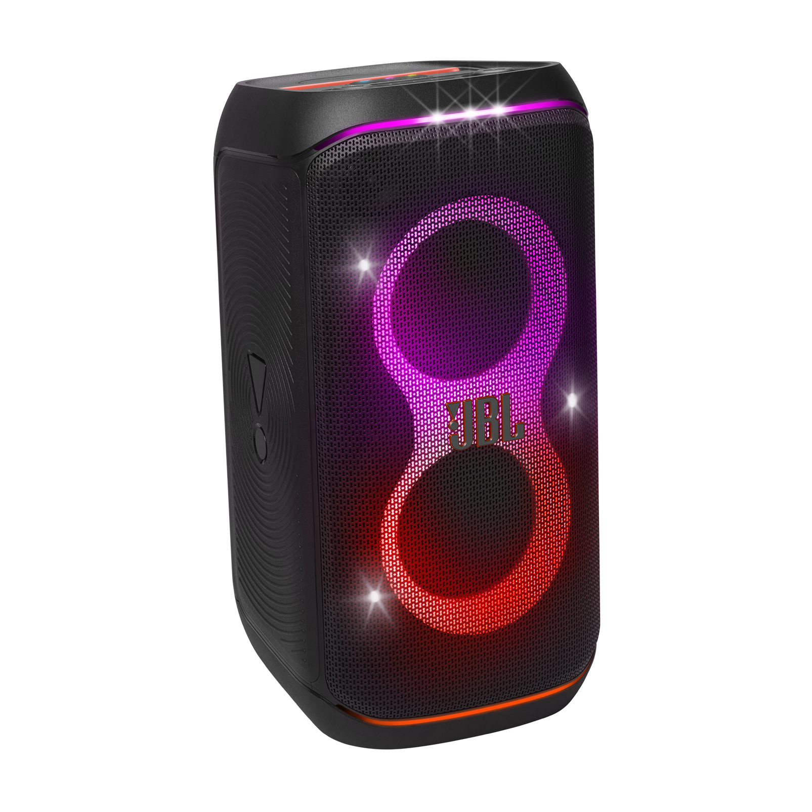 Controlează atmosfera cu efectele interactive din aplicația JBL PartyBox. Mânerul pliabil și ergonomic face boxa ușor de transportat oriunde, iar designul rezistent la stropire o protejează chiar și în caz de ploaie. Oferă până la 12 ore de redare continuă, iar dacă petrecerea continuă, poți înlocui pur și simplu bateria pentru a menține muzica și luminile aprinse.