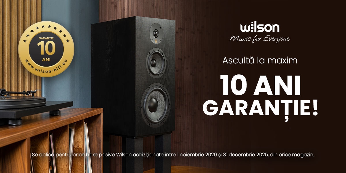 Beneficiați de garanția EXTINSĂ de 10 Ani care se aplică exclusiv boxelor pasive Wilson cumpărate între 1 Noiembrie 2020 – 31 Decembrie 2026 (a se păstra factura de achiziție/bonul fiscal pentru validare!).