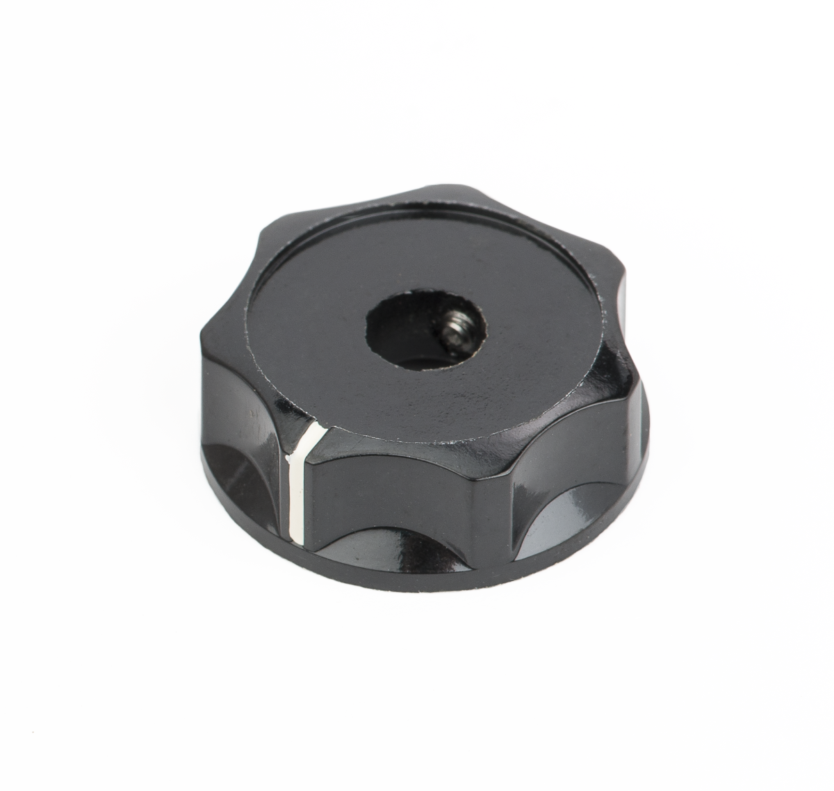 Buton din plastic negru cu linie indicatoare albă. Fixați suportul cu șurub. Proiectat pentru a se potrivi potențiometrelor cu ax solid de 1/4". Buton inferior pentru control stivuit. Nu include șurubul de fixare sau butonul superior (cod. 0049411000).