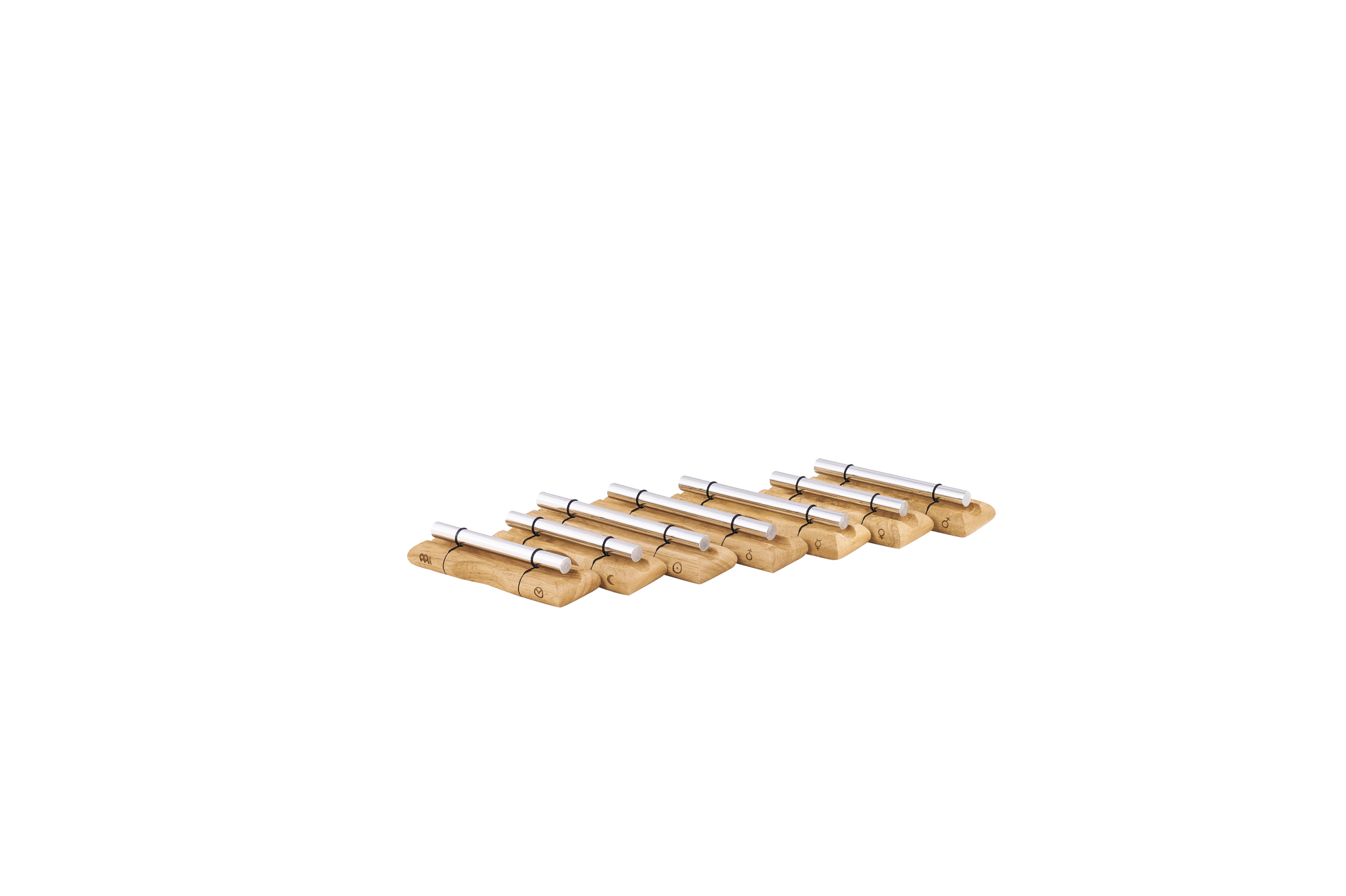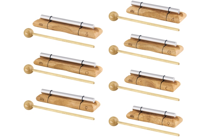 Chimes-urile energetice cu acordare planetară Meinl Sonic Energy sunt create utilizând calculele lui Hans Cousto (Octava Cosmică) pentru a se potrivi cu frecvențele Soarelui, Lunii și planetelor. Fiecare sonerie este reglată pentru a crea frecvența de potrivire a corpului ceresc. Fabricat din aliaj de aluminiu anodizat argintiu pentru o frecventa exacta. Baza decorativă din lemn este finisată cu un logo gravat și un simbol de acordare, iar fiecare clopoțel vine cu un ciocan de lemn care produce o notă clară și definită pentru a umple cu ușurință spațiul (mic sau mare) cu un sunet liniștitor. Acest ciocan poate fi depozitat convenabil pe baza de lemn prin introducerea lui sub clopoțel. Aceste clopoțeii energetice de înaltă calitate sunt ideale pentru scopuri terapeutice și meditative, dar pot fi folosite și în sălile de clasă sau ca semnal sonor. Sfatul producătorului: utilizați clopoțeii de energie planetară și în combinație cu diapazonele planetare potrivite de la Meinl Sonic Energy.