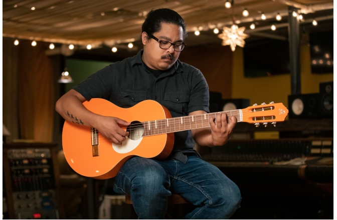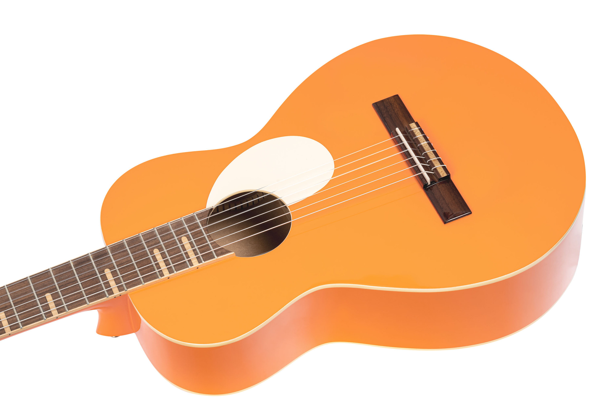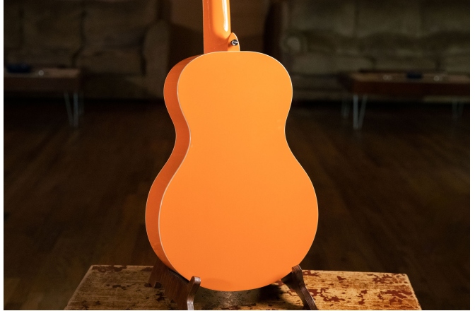 Ortega Gaucho Orange + Bag - Originară din cuvântul spaniol „Gaucho“, care descrie călăreții sud-americani curajoși și indisciplinați, seria Gaucho reprezintă acest spirit de descoperire și libertate. Cu patru finisaje vintage în gri platină, măr verde, portocaliu, albastru deschis și pickguard în formă de lacrimă, instrumentele sunt o abatere de la designul tradițional de chitară cu corzi de nailon. Chitarele au un corp de salon mai mic, care este foarte confortabil de cântat. Toate modelele includ o geantă de concert Ortega Guitars asortată.