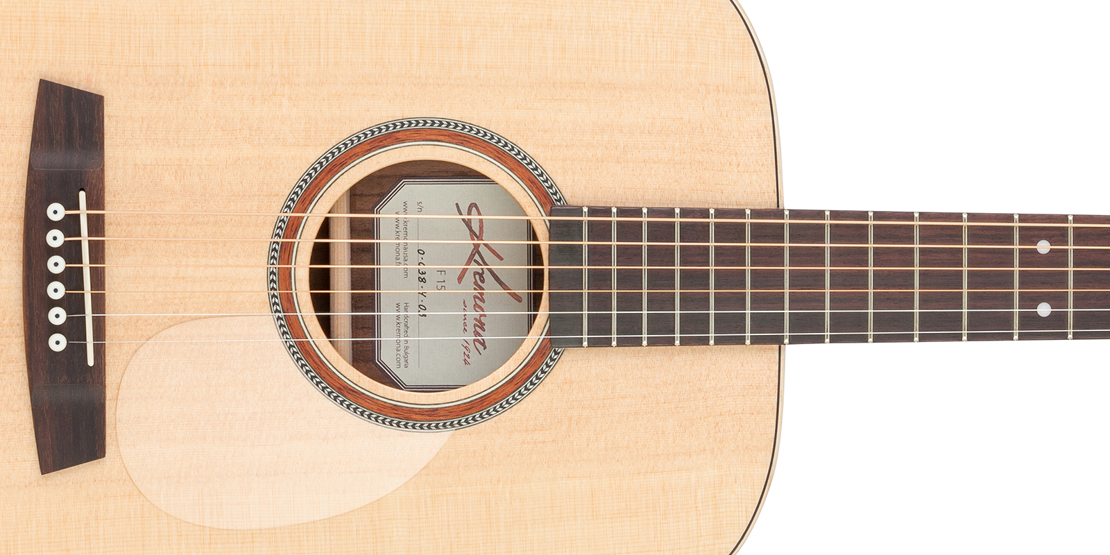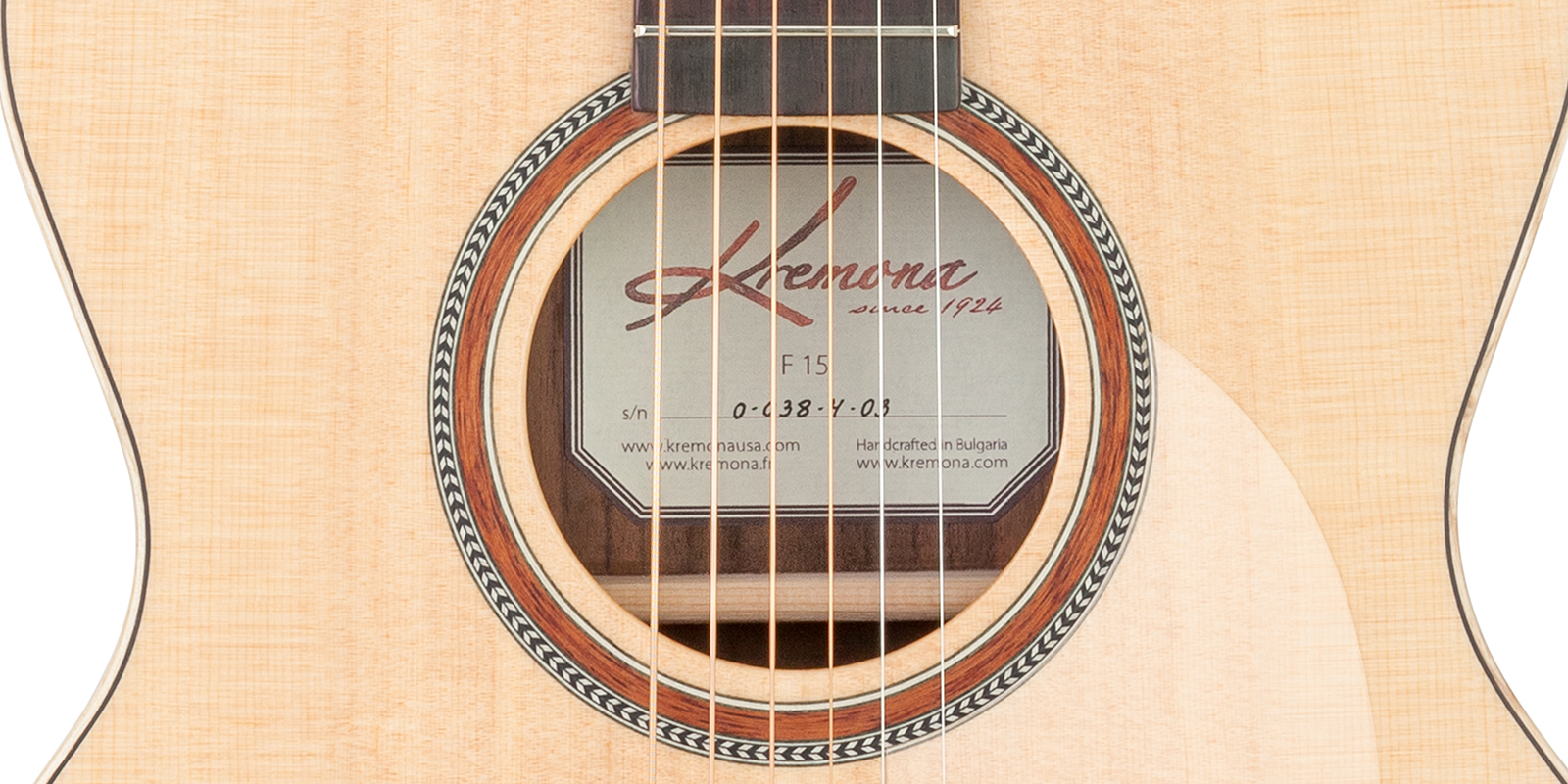 Kremona Orchestra F15 Solid Spruce/Rosewood - Chitară acustică în formă Orchestra (sau OM), cu fața din molid solid ce produce un sunet luminos și detaliat, în timp ce spatele și lateralele din Palisandru adaugă trăsături sonore cristaline și separare excelentă între note.