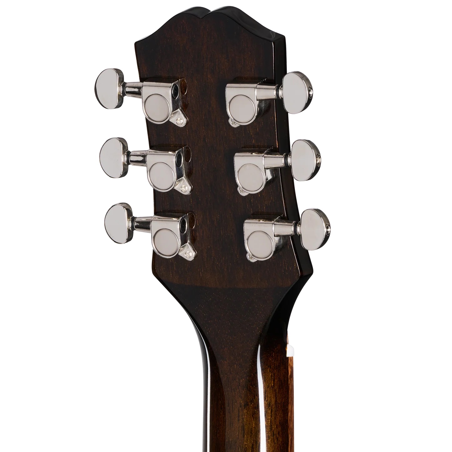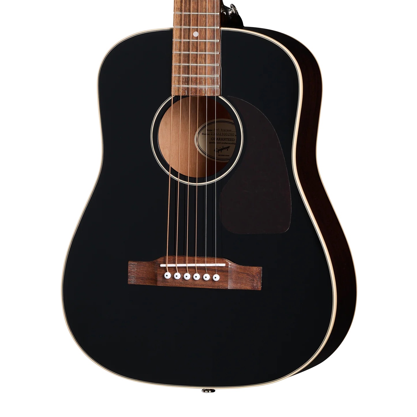 Epiphone J-45 Express - Chitară acustică compactă, ideală pentru călătorii și pentru începători. Dimensiunile reduse și scala mai scurtă o fac ușor de cântat și de transportat. Este alegerea ideală pentru cei care doresc o chitară acustică ușoară, compactă și portabilă, fără a compromite calitatea sunetului. Perfectă pentru călătorii, școală sau începători care vor să exploreze muzica oriunde.