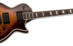 Chitarele din seria LTD Deluxe EC-1000 sunt concepute pentru a oferi tonul, senzația, aspectul și calitatea pe care muzicienii profesioniști le au nevoie într-un instrument, rămânând în același timp suficient de accesibile pentru jucătorii serioși. Cu EC-1000T CTM, „T” înseamnă „tradițional”, referindu-se la corpul cu grosimea completă a acestui model, care este camera pentru ușurarea greutății, fără tăieturi în talie, ca modelul tipic EC-1000. Dispune, de asemenea, de legături multistrat pe corp/capă pe partea superioară și la spate a corpului. Această chitară oferă un corp de mahon cu un blat remarcabil de arțar flamuat și o construcție set-thru la scară de 24,75 inchi, cu un gât de mahon cu finisaj satinat. Sunetul EC-1000T CTM este alimentat de un set de pickup-uri Fishman Fluence Open Core Classic Humbucker cu comenzi push-pull pentru a selecta între trei sonori diferite, oferind tonul și răspunsul atât ale soiurilor de pickup active cât și pasive (voce 1 și 2). ), precum și soiurile single-coil (Vocea 3). Alte caracteristici includ hardware auriu, o punte de blocare TonePros și o cordieră și o placă din abanos Macassar cu 22 de frete extra-jumbo din oțel inoxidabil.