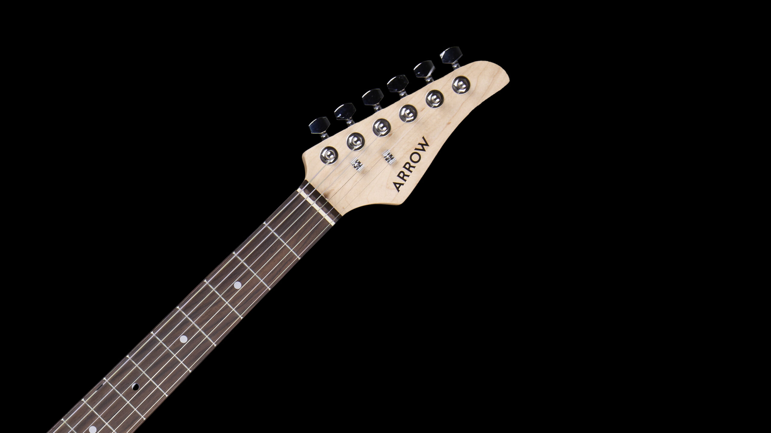 Arrow Tonecaster ST 211 Deep Black Rosewood/Black – Chitară electrică în stil Stratocaster, de culoare negru intens, cu pickguard negru. Corpul este din plop, în timp ce gâtul din arțar canadian este echipat cu o tastieră din palisandru, iar cele 3 doze în configurație Humbucker Single-coil / Single-coil sunt ideale pentru versatilitate tonală în orice gen muzical. Chitara are un cutaway asimetric care face să fie ușor și confortabil să ajungi chiar și la cele mai înalte freturi.
