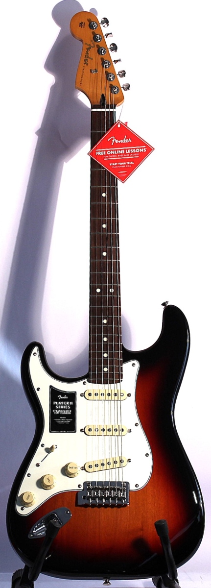 Fender Player II Stratocaster® Left-Hand, Rosewood Fingerboard, 3-Color Sunburst – Chitară electrică pentru stângaci. O reinterpretare modernă a legendarului model Stratocaster®, concepută special pentru chitariști stângaci. Cu un sunet clasic Fender® și caracteristici actualizate pentru performanță de scenă, acest model din seria Player II oferă o redabilitate excelentă, sunet echilibrat și o construcție de încredere.