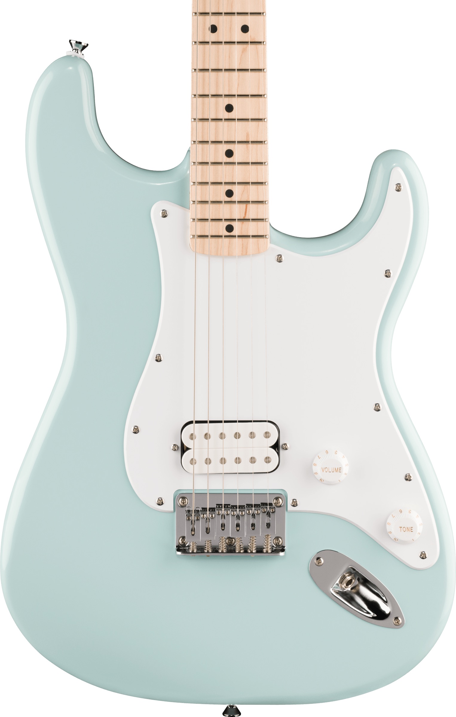 Squier Sonic® Stratocaster® HT H Sonic Blue – Chitară electrică Stratocaster, cu corp din plop pentru fi fi cât mai ușoară, cu ton puternic și clar, ideală pentru orice nivel de cântat. Gâtul tip “C” și corpul subțire asigură confort maxim, iar doza Squier® humbucking (H) de la bridge oferă ton high-output. Include bridge hardtail 6-saddle, mecanisme de acordaj sealed-gear și hardware cromat durabil.