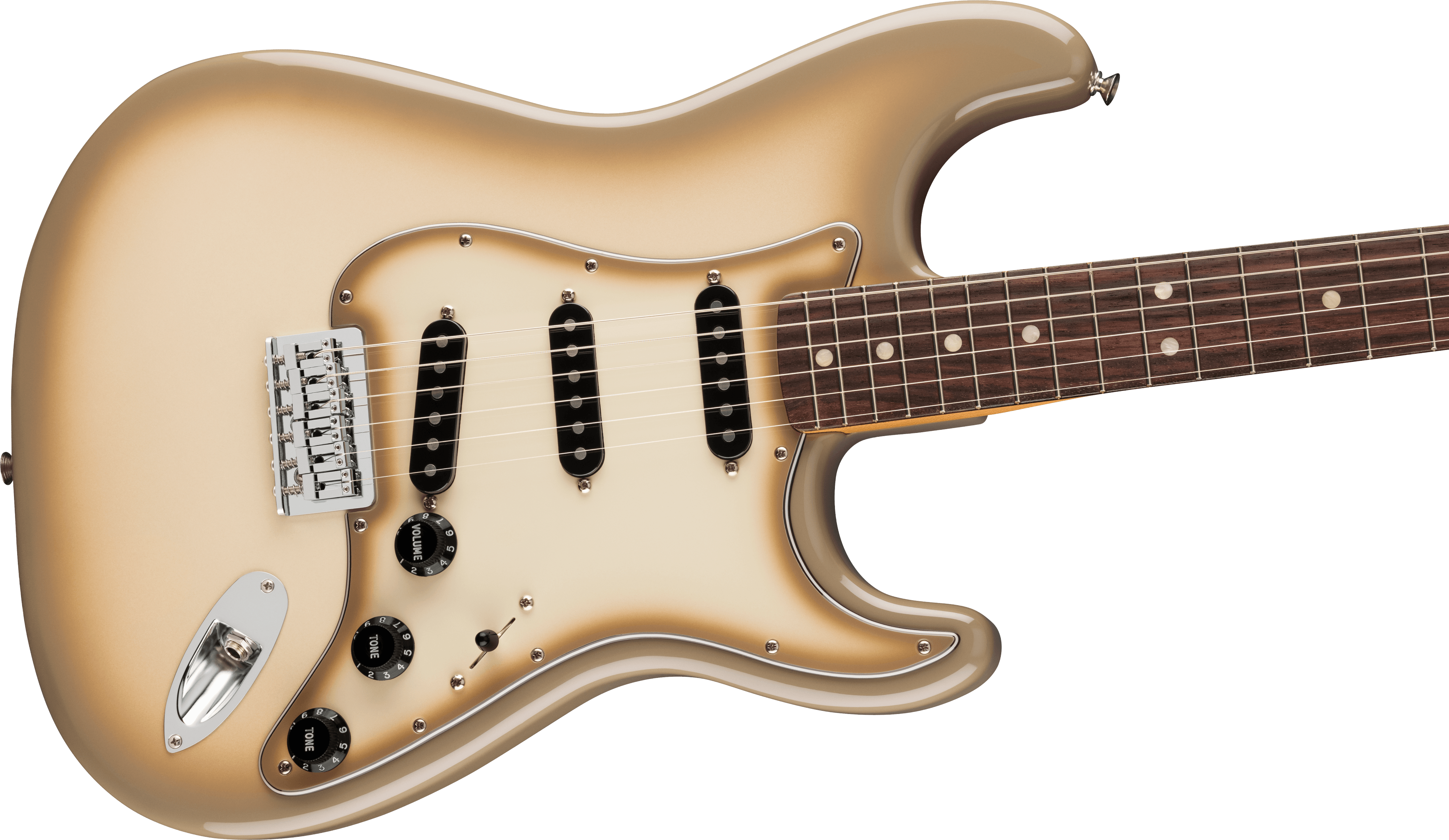 Fender Vintera Antigua Strat RW 70th Anniversary - Vintera® II Antigua Stratocaster 70th Anniversary Vintera® II Antigua Stratocaster prezintă finisajul nostru iconic Antigua, completat de pickguardul asortat pictat manual. Corpul din lemn de arin oferă tonul clasic Fender, plin de forță și claritate. Gâtul din arțar în formă de "U" se bazează pe un profil clasic al anilor '70 și oferă o senzație remarcabilă de confort, în timp ce claviatura din lemn de trandafir cu rază de 7,25" și cu fise înalte de epocă oferă o manevrabilitate vintage cu spațiu amplu pentru bends mari și vibrato expresiv. Sub capotă, veți găsi un trio de pickup-uri 70th Anniversary Vintage-Style '70s Single-Coil Strat® cu bobină simplă, care oferă combinația perfectă de căldură și rezistență. Tunerii cu ștampilă "F" în stil vintage și puntea hardtail în stil vintage cu șei de bloc asigură o stabilitate a acordării solidă ca piatra.