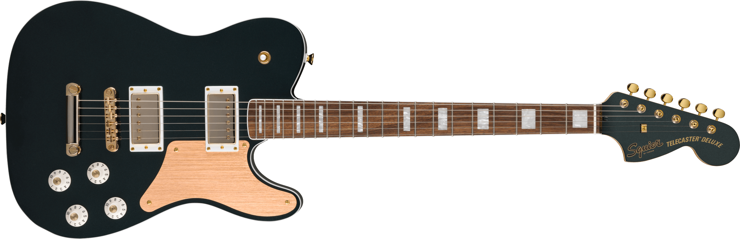 Fender Squier Limited Edition Paranormal Troublemaker Tele Deluxe - Chitară electrică în formă Telecaster, echipată cu 2 x pickup-uri humbucking alnico duble proiectate de Fender, cu comenzi push/pull pentru versatilitate de împărțire a bobinei, cu corpul din plop și tastiera din Laur, o punte complet reglabilă pentru configurații superioare, un gât subțire și confortabil în formă de „C“ cu un finisaj lucios pentru o senzație elegantă, dar sigură, și cheițe de acordare în stil vintage pentru un reglaj precis și fiabil.