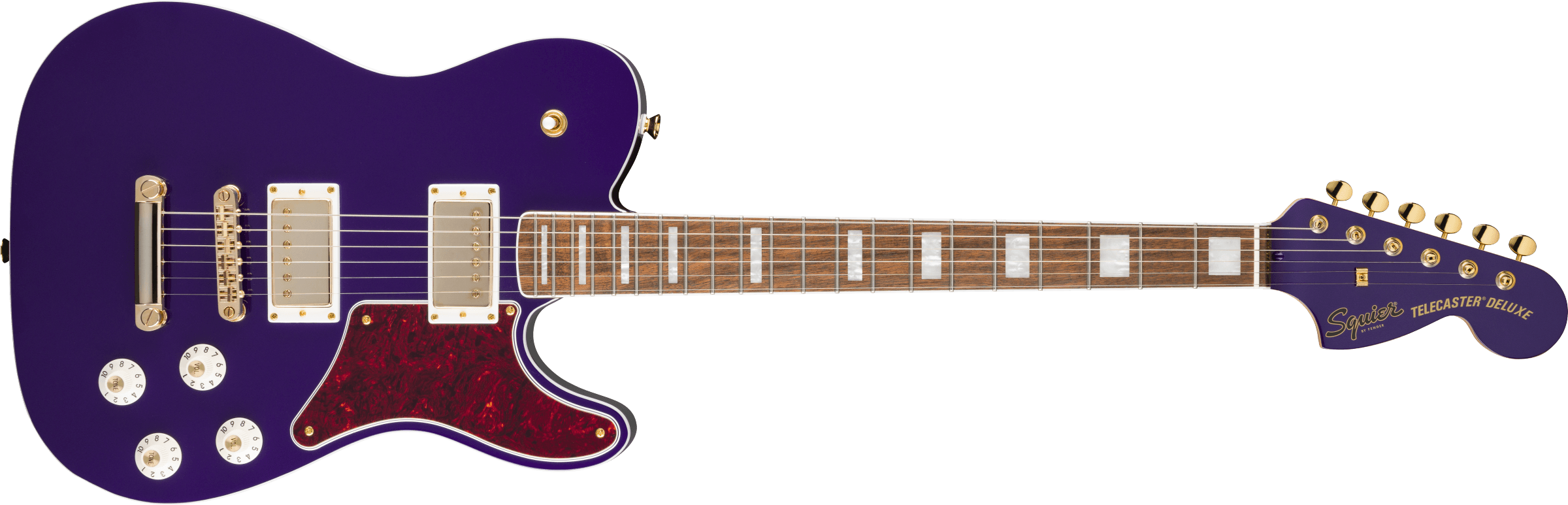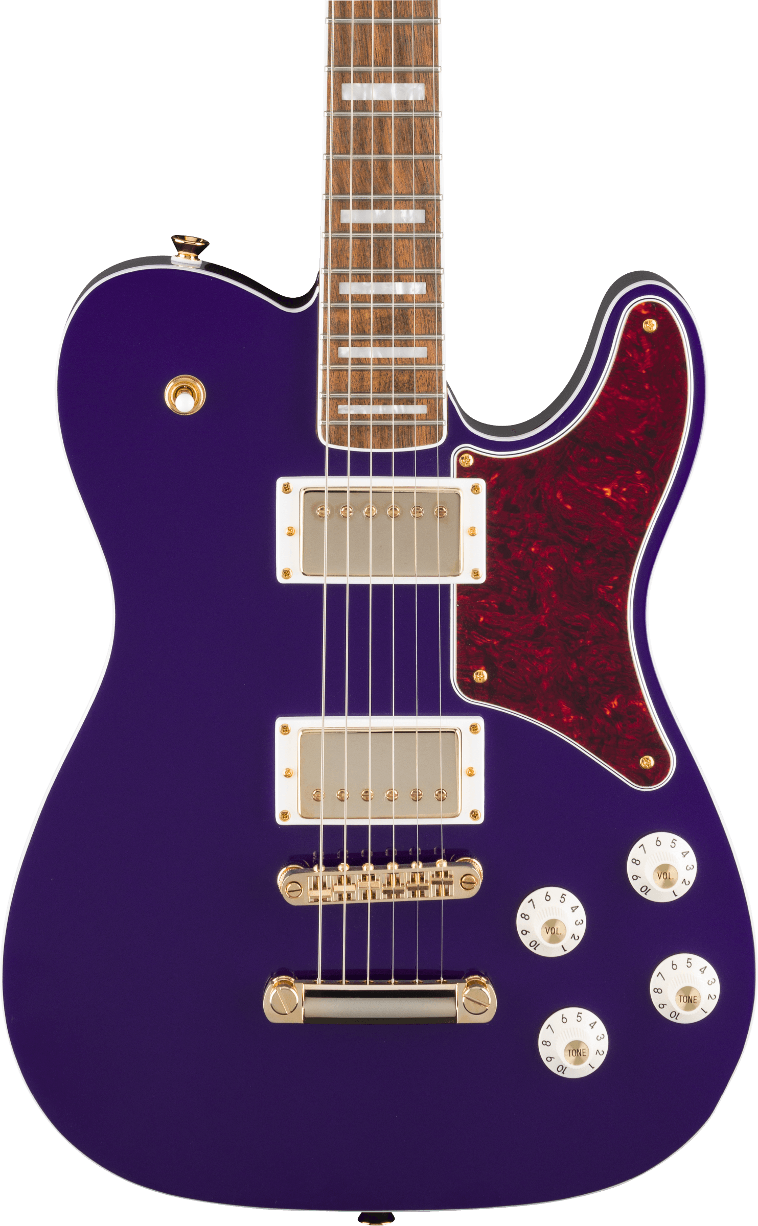 Fender Squier Limited Edition Paranormal Troublemaker Tele Deluxe Purple Metallic - Chitară electrică în formă Telecaster, echipată cu pickup-uri humbucking alnico duble proiectate de Fender, cu comenzi push/pull pentru versatilitate de împărțire a bobinei, o punte complet reglabilă pentru configurații superioare, un gât subțire și confortabil în formă de „C“, cu un finisaj lucios pentru o senzație elegantă, dar sigură, și cheițe de acordare în stil vintage pentru un reglaj precis și fiabil.