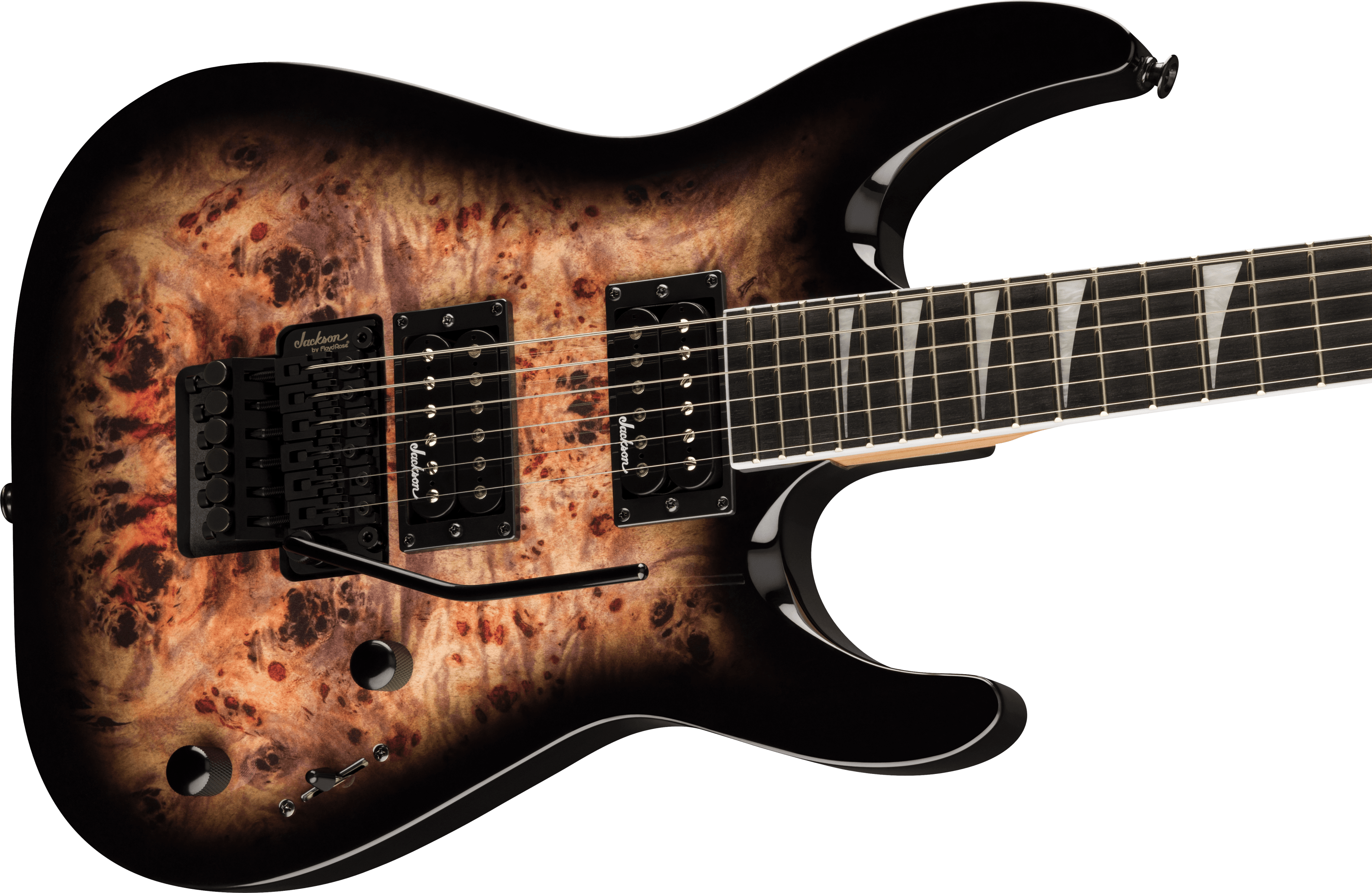 Jackson JS32 DKAP - Chitară electrică cu corp din plop, top arcuit și 24 de freturi jumbo, oferind confort maxim pentru riff-uri rapide și solo-uri tehnice. Ideală pentru pasionații de hard rock sau heavy metal, oferind stabilitatea unui sistem Floyd Rose.