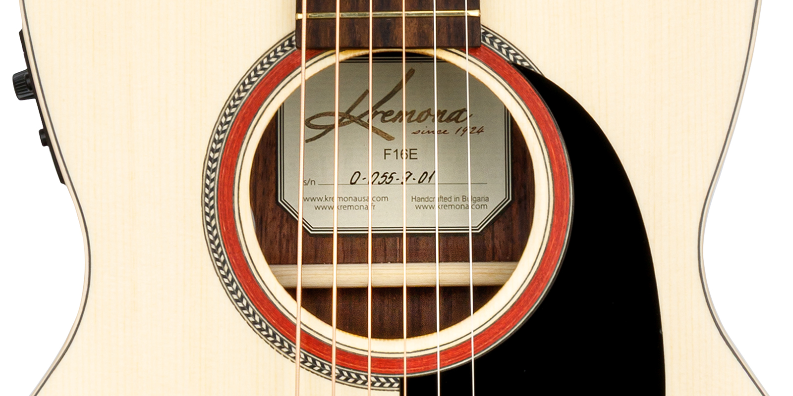 Kremona F16E Parlor – Chitară electro-acustică, în formă Parlor, fabricată manual în Bulgaria de lutierii Kremona. Acest model îmbină farmecul vintage cu performanța modernă, având fața/placa sonoră din molid masiv, și spatele/lateralele din palisandru.