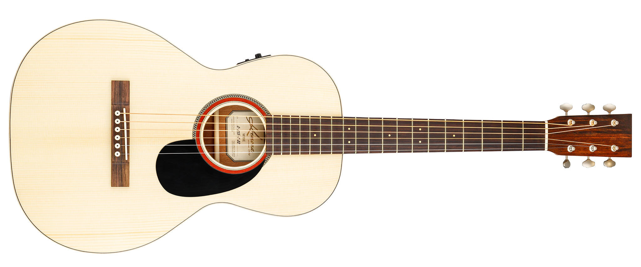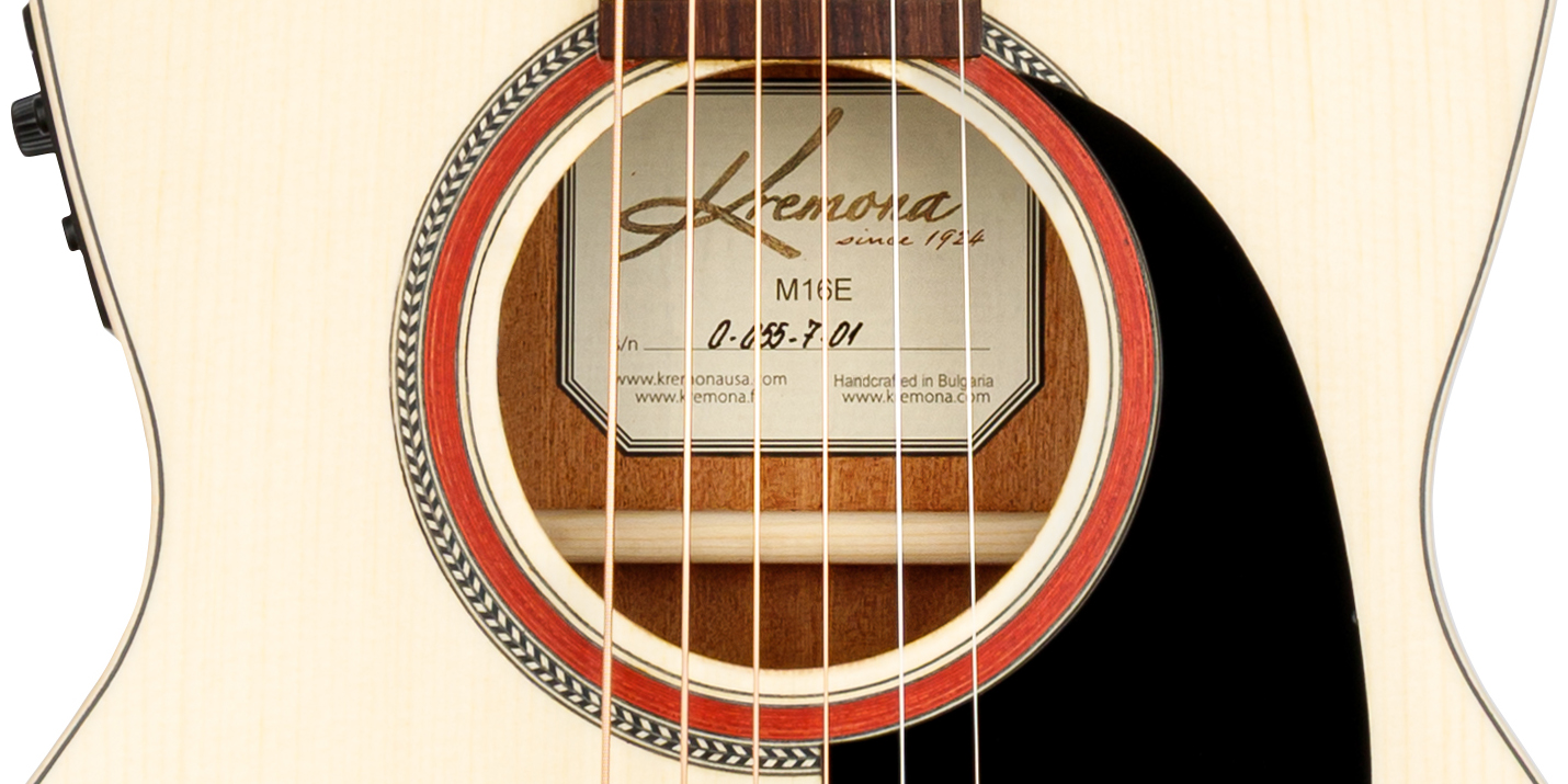 Kremona M16E Parlor – Chitară electro-acustică în formă Parlor, cu scală scurtă, fabricată manual în Bulgaria de lutierii Kremona. Acest model îmbină farmecul vintage cu performanța modernă, având fața/placa sonoră din molid masiv, și spatele/lateralele din mahon.