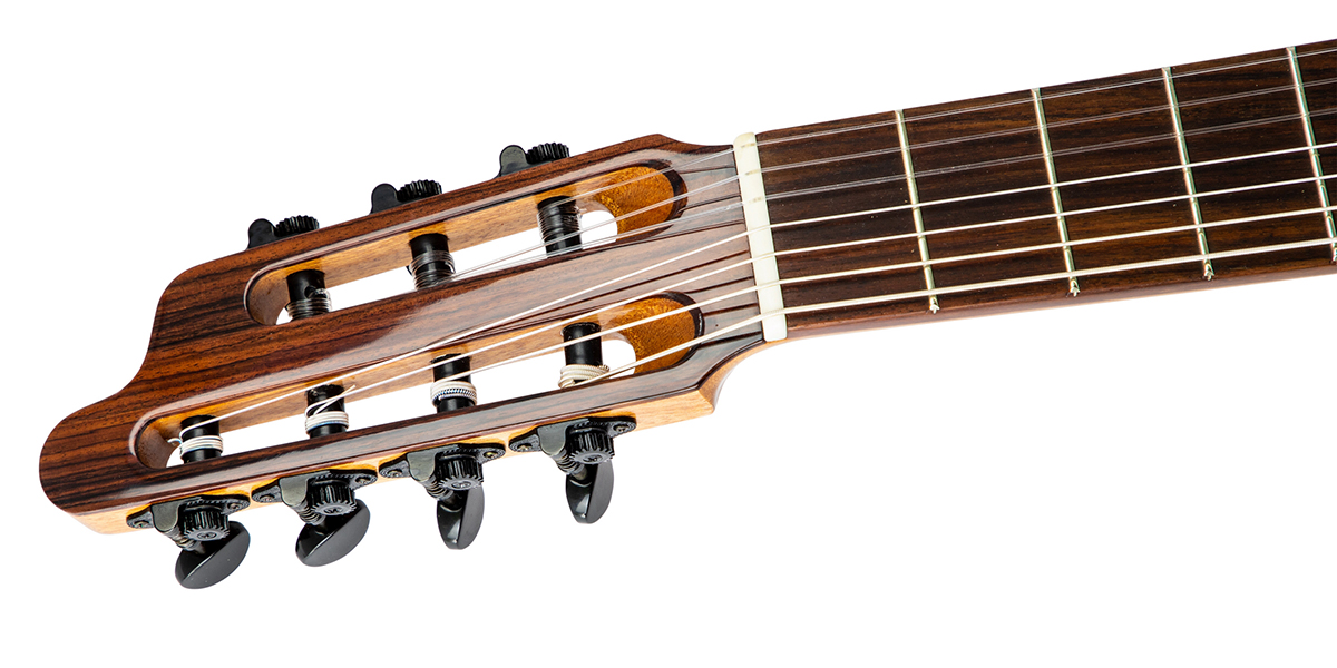 Kremona Performer F65CW-7S-VE Solid Cedar/Indian Rosewood - Chitară electro-clasică cu 7 corzi, proiectată pentru acordaj standard sau Romany Open G, cu o coardă joasă Si (B), ce oferă claritate și expresivitate atât acustic, cât și amplificat.
