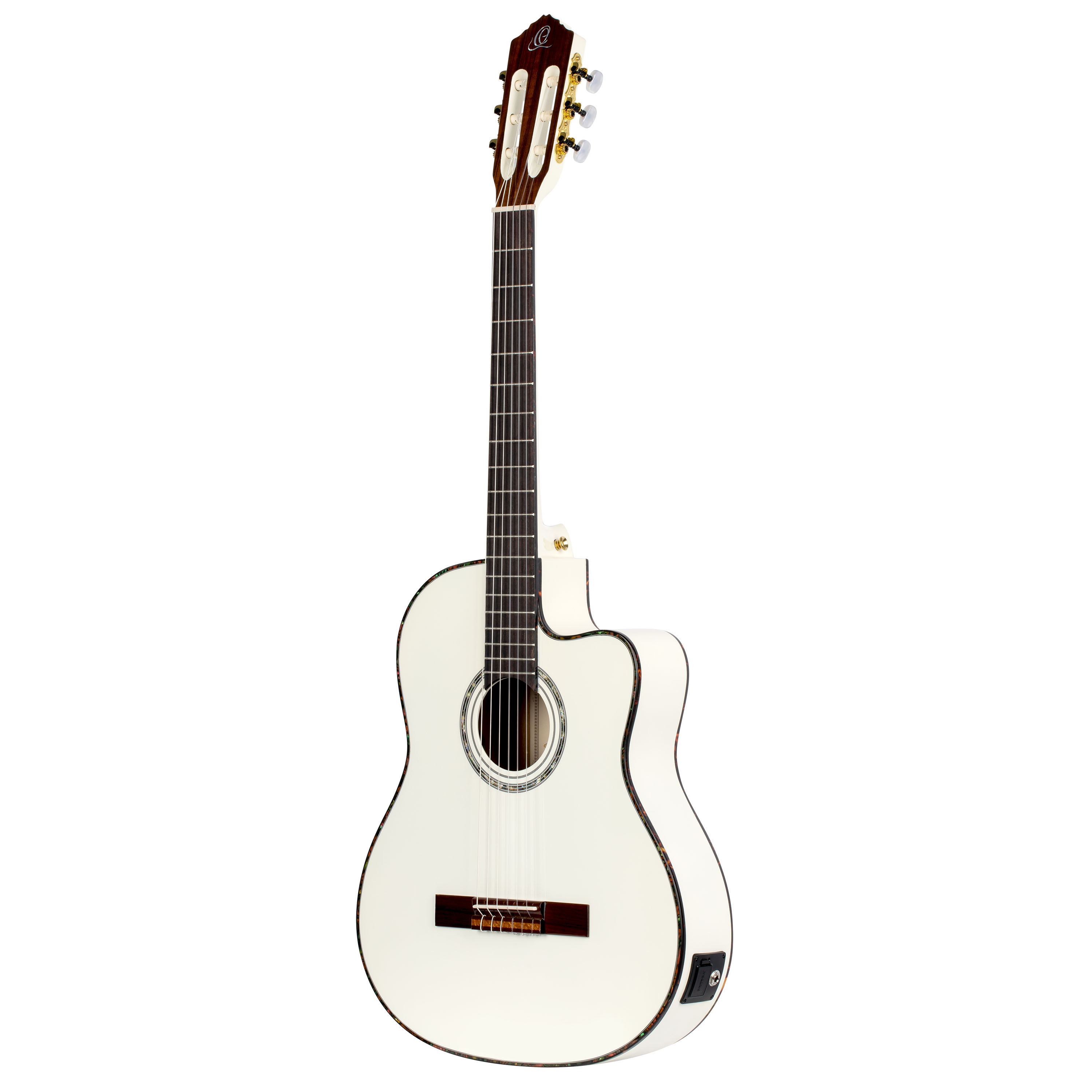 Ortega Classical Guitar Family Series Pro 4/4 inclusive Gigbag and Strap Thinline Body Slim Neck - WH - White