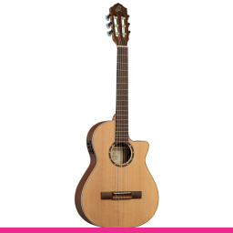Ortega Family Series 3/4 Nylon String Guitar 6-String - Natural + Gig Bag RCE125-3/4 – Chitară electro-clasică de mărime 3 / 4, cu fața din molid și spatele/ lateralele din mahon, corp îngust Thinline, un Cutaway pentru acces îmbunătățit, binding din plastic ABS, o punte cu 12 găuri, un truss-rod de reglare pe 2 căi, un preamplificator MagusX/G (reîncărcabil) și este o husă de transport inclusă la livrare.