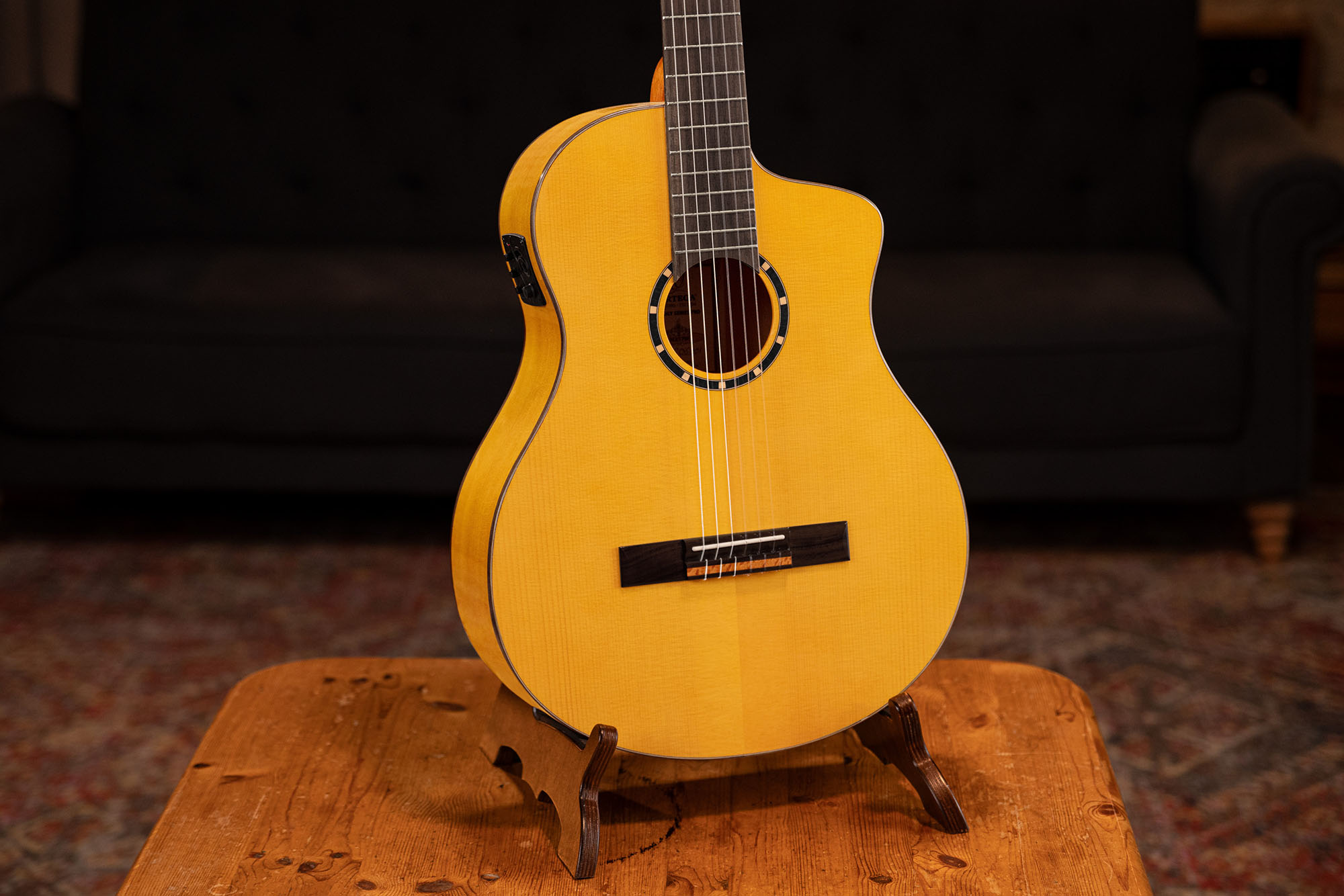 Aceste modele noi din seria Family Pro, care înclină mai mult spre stilul flamenco, oferă un început excelent acestui gen muzical. Aveți de ales între un model cutaway electric sau un model acustic. Simțul și aspectul sunt foarte asemănătoare cu chitarele tradiționale flamenco. Tonul tipic cu un atac rapid și înalte proeminente este asigurat de combinația caracteristică de lemn a unui blat solid din molid nord-american cu un corp de Chiparos. Fiecare chitară este livrată cu o husă Ortega Deluxe și o folie de protecție divizată reutilizabilă.